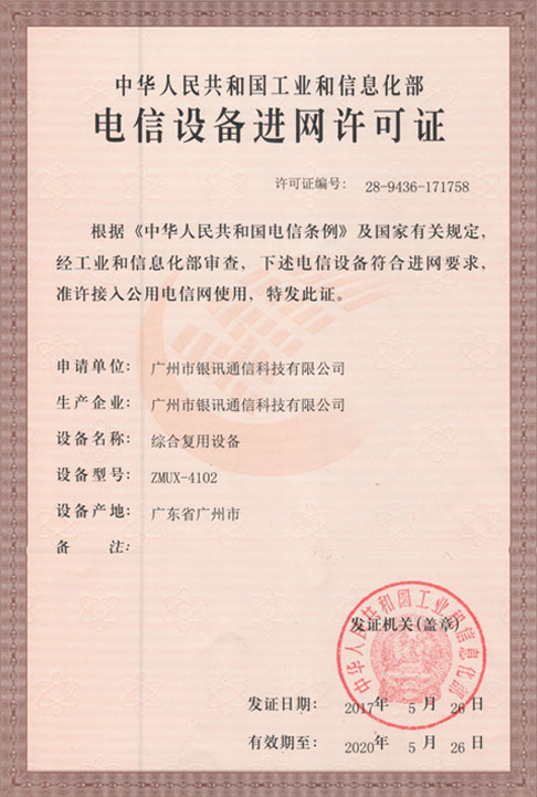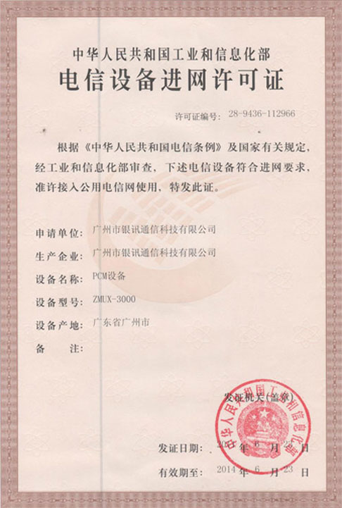 電信設(shè)備進(jìn)網(wǎng)許可證