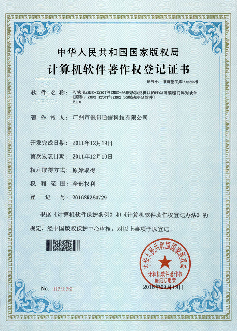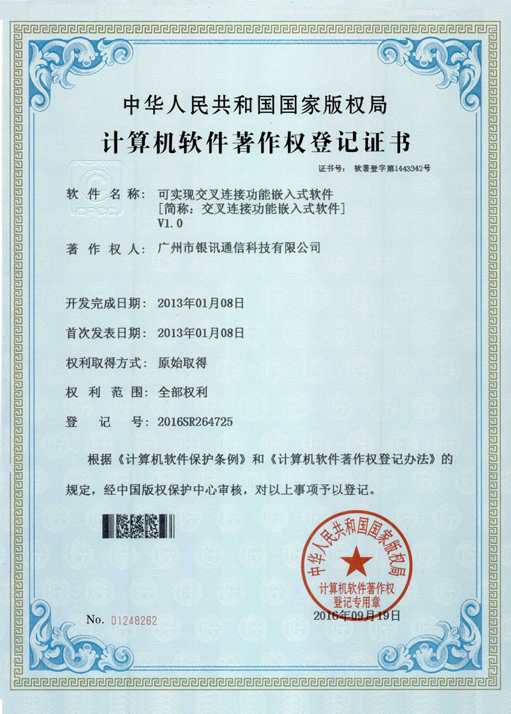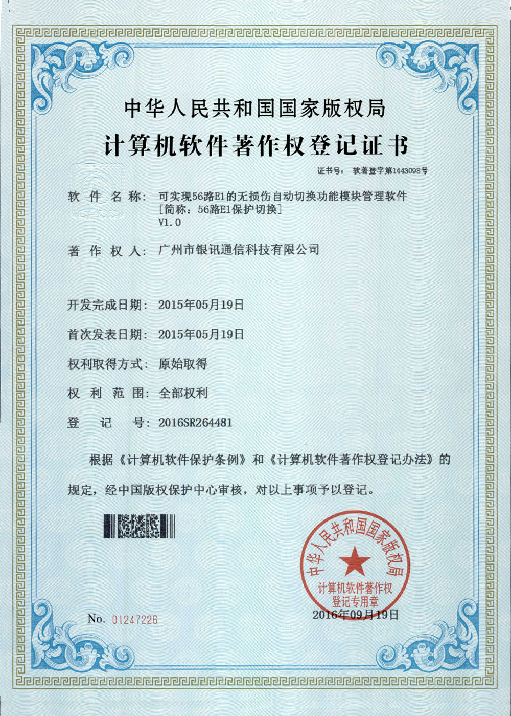 國(guó)家軟件著作權(quán)證書